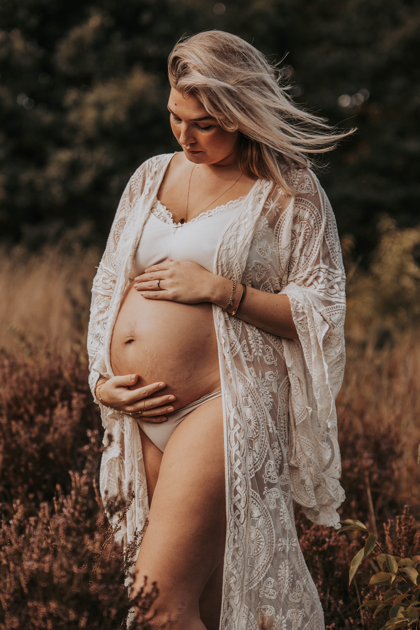 De zwangerschapsshoot plannen we het liefst tussen week 30 en 35 van je zwangerschap. In deze periode heb je vaak al een prachtige, ronde buik, maar voel je je meestal nog fit genoeg om ontspannen te kunnen genieten van de shoot. Na deze weken kun je wat meer last krijgen van vocht of pijntjes. Ik als fotografe vind het belangrijk dat jij je tijdens de shoot comfortabel en mooi voelt.
